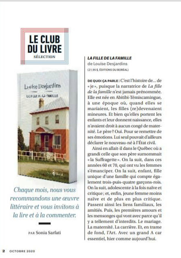 La Fille de la Famille, roman, Boréal, 2020, 200 p.