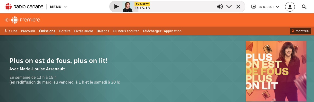 Extraits audios d'un entretien à CIBL 100,5 à l'émission Le Libraire de Force animée par Lynda Dion